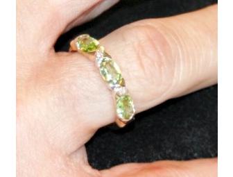 Beautiful peridot and diamond ring set in 10K yellow gold. Ladies size 7. Makes a beautiful gift for any occasion.