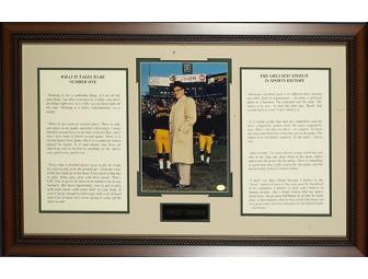 This collage contains two of Vince Lombardi most famous speeches entitled "What it Takes to be Number One" and "The Greatest Speech in Sports History" framed together with a descriptive nameplate and an 8x10" photo of the Green Bay Packer Coach. Overall framed size is 33"x21".