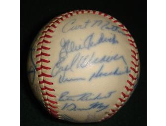 A sourvenir baseball signed by the entire 1968 Baltimore Orioles team, including Earl Weaver, Brooks Robinson, Davey Johnson, Elrod Hendricks, Boog Powell