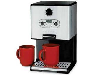 Cuisinart DCC2000 : 24-hour advance brew start feature. Double-wall coffee reservoir.Press to Serve lever dispenses one cup at a time. Simple-to-read coffee gauge counts down cups remaining. Auto shut off. Visible water-level indicator.Removable reservoir. Water filter. The Cuisinart Coffee on Demand 12-cup Coffeemaker features brushed stainless-steel housing and clean contemporary styling. For coffee without the carafe, the unit's double-wall coffee reservoir holds enough for 12.5-ounce cups of coffee