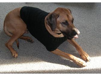 If you are the lucky owner of a very large, short-haired dog, you need this hand-knit sweater for the winter! Parent Aileen Ginocchetti crafted this machine washable, black sweater, which is handsomely modeled by Leon, the 100-pound Rhodesian Ridgeback.