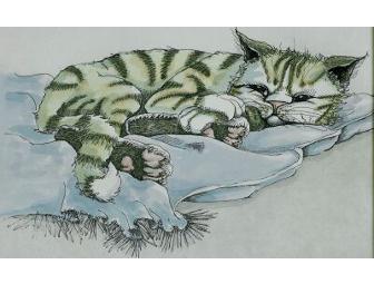 "I like animals", she says. "They remind me of the old silent film stars, animating their stories with a look and a gesture. In the living room, around the yard or on the farm, animals are the greatest, most natural actors in the world. The speak in elegant, universal body language. Every dog is a Barrymore and there surely must be some Theda Bara or Douglas Fairbanks in every cat. I try to capture some of their lighter moments in my drawings. If I have succeeded with a look, a yawn, or a busy pursuit, perhaps you will join me in a smile of recognition... yes, I too know and like this wonderful creature."