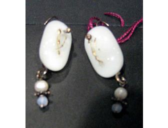 White glass with metal earrings from deisgner Arleen Bowman.