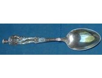 Caron Bros silverplate spoon w/full image of military officer on top of handle w/name "Kitchener" embossed below on handle. Bowl plain.