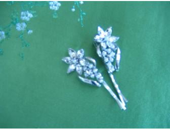 Pin back your hair with this pair of jeweled hair pins with crytals and pearls.