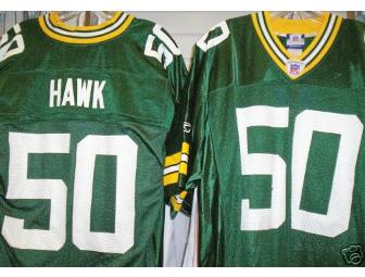 Get ready for next season with this replica #50 A.J. Hawk Green Bay Packers jersey! The winning bidder can specify a size preference for the jersey. Cheer on Buckeye star A.J. Hawk during his first season in the NFL. Bid today!
