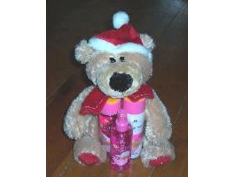 Christmas Teddy Bear from Body Source. Brings gifts of Berry Blossom gel, lotion, and body spray.