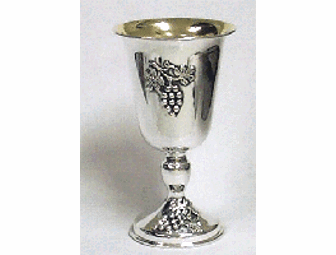 Two lush bunches of grapes decorate this fine sterling silver, goblet style Kiddush Cup. Gold washed interior.