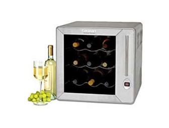 CUISINART FEATURES- Private Reserve Wine Cellar Cuisinart presents an alternative to expensive, full size wine cellars with the Cuisinart Private Reserve Wine Cellar. Traditional stainless steel styling and the option of soft interior lighting, beautifully display up to 11 bottles of wines and champagnes. Patented temperature control guarentees that different varieties are stored at ideal serving termperatures. Thermoelectric compressor-less cooling makes this countertop cellar lightweight, easy to carry....and quiet! Features include 8 presets for proper serving and storage temperatures for any variety of white or red wine, 3 removable chrome racks designed to hold 750ml or 1500 ml bottles, double pane tinted viewing window and ability to adjust temperature manually...