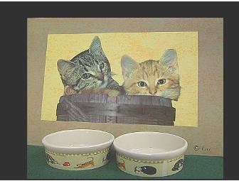 Feeding set includes 2 dishwasher safe, ceramic bowls. Mat is heavy duty, easy to wipe clean.