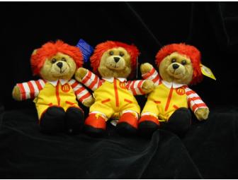 Three collectible - 8" Ronald McDonald Bear by Build-A-Bear. Autographed by Ronald McDonald