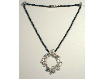 DRape this necklace of hematite beads (20") with a hand-forged sterling silver pendant by Magda Handcrafted Jewelry.