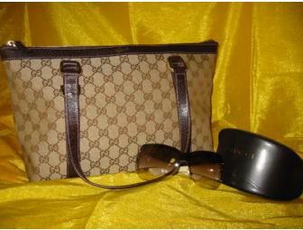 Be the proud owner of these classic, must-have summer accessories from one of the most recognized luxury fashion brands, Gucci. You are sure to be delighted with this beautiful handbag and fashionable oversized sunglasses.