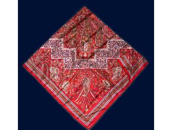 Enjoy draping this predominantly red Indian Silk Scarf around your neck.