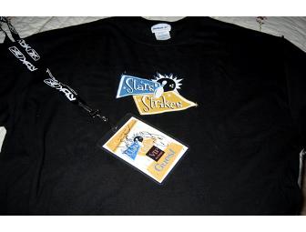 Autographed VIP pass Bruins hall of Famer, Cam Neelyu and Olympic Hockey Gold Medalist, Mike Eruzione and Stars and Strikes T shirt. VIP Guest pass autographed at Stars and Strikes 2006 event. Letter of authenticity by donor can be supplied if requested.