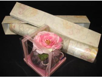 The floral scented sachet by Flora Bunda is wrapped in chiffon and tied with a satin cord. There are eight sheets of rose scented drawer liner in a decorative box.