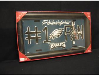 Attention Eagle's Fans!!!!! This Philadelphia Eagles License Plate Clock is just what you would like to have in your home or office. It is a standard size license plate in a black frame and is battery operated (battery not included).