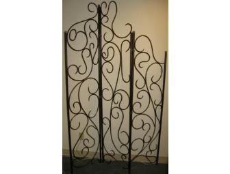 This decorative room divider will add flare and elegance to any room in your home. The piece was artistically crafted to beautify your space. It has a steel frame and stands approximately 6 feet, 10 inches tall. Each section is approximately 17 and 1/2 inches wide.