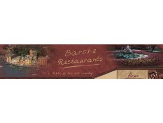 Barone's Tuscan Grill Authentic Italian cuisine paired with unique, delicious daily specials. Lunch served Monday-Saturday from 11:30 AM-4:00 PM Dinner from 4 PM-9 PM Mon -Thurs. open till 10 PM Friday and Saturday Sunday Brunch from 11 AM-3 PM BYOB Located in the Olde Sproul Shopping Center. This gift certificate is for $20.