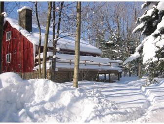 This lovely rustic ski chalet is situated on a private one acre lot at the top of a ski slope. 1 queen bedroom, 4 sets of bunkbeds in 2 bedrooms, and a sleeping loft will accomodate 12 happy souls as you ski out of the lower level for all day fun.