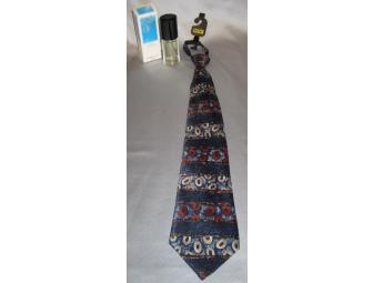 1 OZ Park Plaza's version of Acqua Di Gio Men AND this very handsome and unique tie. The tie is made by Zip Tie U.S.A. in California, and is a pre-knotted tie that you just loosen and tighten around your neck and it's done and looks perfect every time.