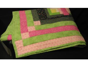 This very beautiful quilt is in "Blooming Logs" pattern. The queen size comforter is all hand quilted and measures 83" X 104 ".