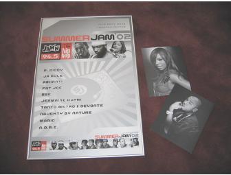 Framed limited edition poster promoting 94.5 JAM'N Summer JAM '02. Headlining the show P. Diddy, Ja Rule, Ashanti, Fat Joe and others. Included are 2 autographed photos of Ashanti and Ja Rule.
