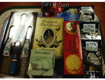 A festive hostess tray with cheese spreaders, crackers, dips key lime cheeseball mix, tea biscuits and a $10.00 Genuardi's giftcard for all the necessary perishables.