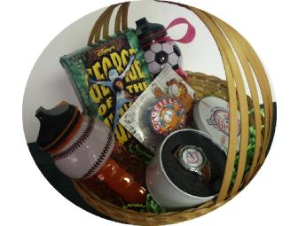 Basket contains Garfield, "George of the Jungle" video, Yankees Watch, Sport Drink, & Garfield yoyo.