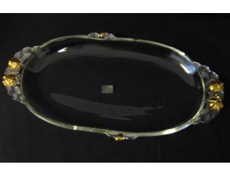 This beautiful clear glass tray by Mikasa is trimmed in gold roses and measures 15 inches long by 8 inches wide.