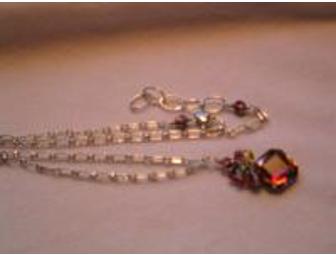 Pink,orange,green Swarovski crystals on 17" sterling silver chain with heart clasp.
