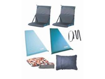 Everything you and yours could possible want for a comfortable night sleep in the backcountry. This kit comes with: a Therm-a-Rest Women's Trail Comfort in a Regular size (20" x 66"), a Trail Comfort in a Large size(25" x 77"), two Therm-a-Rest Trekker Lounges that convert a Therm-a-Rest into a comfy camp chair or lounge, a Universal Couple kit which securely holds two mats side-by-side throught the night and two Compressible Pillows in a size Medium (14" x 18"). For more information on these products, please visit the Therm-a-Rest website at www.thermarest.com.
