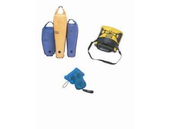 This package includes the dry bags and gear storage one needs to pack up the kayak for a get-away. This kit includes: -Two (2) Kodiak Taper 35 Liter dry bags in yellow. These lightweight dry bags are made with tough low-friction nylon, radio-frequency welded seams, and are shaped to slide easily into tight spaces. They have a Dry SealTM roll-down closure and D-ring attachment. Kodiak Tapers are shaped to fit sea kayak bulkhead compartments for the most efficient use of space: Taper 35 in. stern, 20 in. bow. To ease stuffing, excess air can be squeezed out of a purge valve at the bottom of the bag. Weight: 11 oz./310 g Volume: 2080 cu. in./34 li Size: 5.5-11 in. dia. x 39.5/14-28 x 100 cm - One (1) Baja Deck Bag. Here's the best way to keep a few essentials dry and handy on deck while sea kayaking. SealLine Baja deck bag has waterproof RF-welded seams and a low-profile shape to protect against deck-washing waves. Convenient zip access is guarded by our patented splash-proof Zip LipsTM closure and roll-back zipper visor. It is built with tough 19 ounce vinyl and an internal shape-holding stiffener. Outside, a mesh zip pocket holds small items that can get wet, and an elastic cord has clips for attaching a Sealline® Map Case or Electronic Case. A detachable shoulder strap is handy for carrying on shore. Weight: 20 oz./570 g Volume: 620 cu in./10 liters Size: 4x12x13.5 in./10x30x35 cm - One (1) Deluxe Bailing Sponge. Made with super absorbent foam and water-hogging Packtowl® fabric, these bailing sponges have an easy to grab shape. Snap loop is great for hanging to dry or securing to your boat.