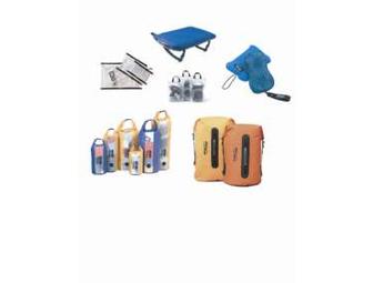 Whether you are packing up your car, canoe, kayak or raft- SealLine will keep your gear protected. This package will get you everything you could need to pack up all your gear for a weekend getaway. This package includes: 1 35-L Tie Down Bag, 1 Map Case, 1 Dry Case, 1 25 L Kodiak Window Dry Bag, 2 Canoe Seats, and 1 Deluxe Bailing Sponge. Details on these items: -One (1) orange 35 Liter TieDown Bag with multiple tie-down points and a stackable, easy-to-carry design make this bag perfect for rafting, canoeing, or lashing to the top of a vehicle. It features a watertight Dry SealTM roll-down closure, side cinch straps, and heavy-duty scrim-reinforced vinyl construction. Weight: 1 lb. 10 oz./740 g Volume: 2270 cu. in./37 liters Size: 10 x 14.5 x 20 in./25 x 37 x 51 cm -One Map Case (1) in a size Large. SealLine's Standard Map Cases have a watertight, wide-track zip closure and are sure to fend off rain and waves. D-rings for easy attachment to kayak, canoe, handlebars or backpack. Weight: 7 oz./225 g Inside Dimensions: 14 x 20.5 in./38 x 52 cm Outside Dimensions: 16 x 22 in./41 x 56.5 cm - One (1) 6 Liter Dry Case in a size large. Keep your essential gear safe and dry inside this watertight Dry Case, which is transparent so you can see what's inside. It closes with a submersible SealLock closure, and has a convenient webbing carry handle. Fits books, cameras, binoculars, first aid kits, or anything else you don't want to get wet. Weight: 2.8 oz./79 g Outside Dimensions: 12 x 15 in./30 x 38 cm Inside Dimensions: 11 x 11.75 in./28 x 30 cm - One (1) 25 Liter Kodiak Window Dry Bag in yellow. Kodiak Window Dry Bags feature a translucent TPU window that lets you see into the bag without sacrificing privacy, as well as a new hands-free, one-way purge valve that offers increased compressibility and is flexible and flush to prevent snagging. They also boast an improved roll-down closure for a watertight seal, and a heavy-duty round bottom that lasts long, maximizes storage capacity, and stands upright to make packing easier than ever. These bags are made of tough, lightweight nylon and are available in seven sizes to fit every dry storage need. Weight: 8 oz./230 g Volume: 1530 cu. in./25 liters Size: 9 x 26 in./23 x 66 cm - Two (2) Canoe Seats. Attach this self-inflating cushion to your canoe seat to paddle longer and more comfortably. The cover has a stretch-knit top and coated nylon bottom with sewn-on buckled straps for attaching quickly to most canoe seats. - One (1) Deluxe Bailing Sponge. Made with super absorbent foam and water-hogging Packtowl® fabric, these bailing sponges have an easy to grab shape. Snap loop is great for hanging to dry or securing to your boat. For more information, go to www.seallinegear.com