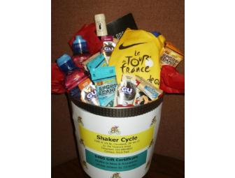 100% pure biking fun. No artificial supplements or hormones included! Gift certificate for $400 to Shaker Cycle that can be applied towards purchase of any road or mountain bike and related accessories. Available bike brands include KHS, Rans, Mongoose and GT. In addition to gift certificate, package will include these other biking essentials: Official Nike Tour de France yellow "leader" jersey; supply of water bottles and fitness bars; and a bottle of French wine from the Alsace region to toast your victorious purchase! Shaker Cycle (telephone 216-685-BIKE) is located in the Tremont area, just 5 minutes from downtown.