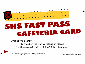 Bid now on the answer to all your problems, the SHS Fast Pass Cafeteria Card.