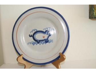 "Here Piggy Piggy" set of six salad and dinner plates made by Louisville Stoneware, and attributed to Mary Alice Hadley.