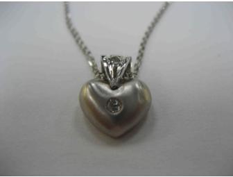Hefez & Sons Jewelers is donating a beautiful 14K white gold heart pendant with a diamond in the center.