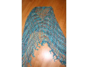 A beautiful blue boucle poncho from Amy Potter. Valued at $25.00.