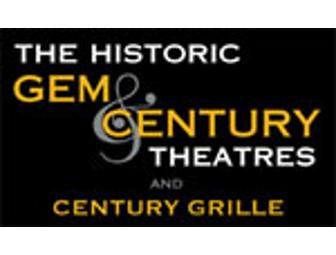 Two gift certificates to a Midweek or Sunday performance at the Historic Gem & Century Theatres. The smash hit revue "Menopause the Musical" - a 90-minute comedy of rock 'n' roll parodies, pertaining to "The Change"- is now in its final weeks at the Historic Century Theatre. This fall the Gem Theatre is showing "The Rat Pack is Back," a tribute to Frank, Sammy, Joey, and Dean.