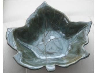This beautiful 8" bowl was handmade by potter JoAnn Stratakos in Poconos studio. She also mixed the green glaze herself. The leaf-pattern bowl is microwave, oven, and dishwasher safe. Includes use and care instructions.