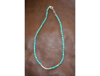 This beautiful silver and turquoise necklace from Ann Rupers is stunning. Valued at $40.00.
