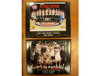 Detroit Pistons championship plaques from the 1990 and 2004 championship seasons. These 8x10 color photographs come mounted on a 10x13 plaque board with engraved nameplate. The plaques are wall mountable and would be a great addition for any Pistons fan!