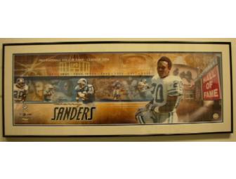 Barry Sanders is one of the Detroit Lions' living legends. This panoramic celebrates his induction into the Pro Football Hall of Fame, Class of 2004. Limited to 250 pieces, this panoramic measures 39-1/2" x 16" and comes double matted in a black metal frame.