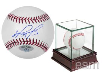 This official Major League Baseball is hand signed by David Ortiz. Included with this item is a glass case with a cherry wood base. Item includes a Certificate of Authenticity.