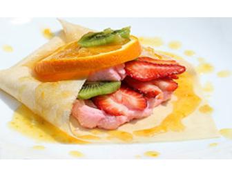 A delicious crepe and pancake brunch for kids! The kids will learn to make delectable crepes with various fillings (fruit, whipped cream and chocolate). They will then consume their tasty creations with milk and juice. Reedemable at winner or donor's home.