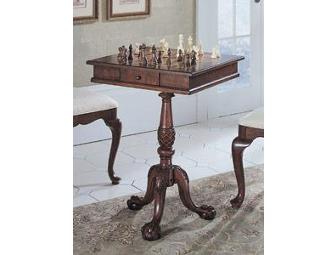 Add this beautiful game table to your home. You'll truly value the table's many fine accents such as hardwood construction, hand-carved detailing, choice veneers, and brass plated hardware that make this beautiful piece extraordinary to own and a timeless tradition to be enjoyed for generations.