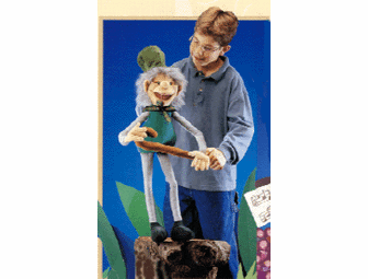 This Folkmanis leprechaun is 32 inches tall. The hat is removable and the cane attaches to hands with Velcro. They were first issued in 1999 and discontinued in December 2002.
