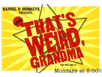 Barrel of Monkeys retains its foolproof central conceit for "That's Weird Grandma" this new evening of short plays by Chicago Public School students, grades three through six. Performed by a troupe of adult hipsters and cheerfully produced with the shabby budget of a Charlie Brown Christmas pageant, the resulting madcap hour has the broadest appeal of any play ever seen. Director Halena Kays is greatly aided by Jonathan Mastro's excellent musical direction, and the class-clown performers boast talent matched only by their altruism, and abandon matched only by their expertise. This group is funnier than anything at Second City, more genuinely creative than anything at Lookingglass, and does more good than all the other nonprofit theaters in town put together. If you don't have a good time, there's something wrong with you.