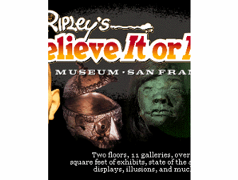 Four tickets to the Fisherman's Wharf location of Ripley's Believe It or Not! Two floors, 11 galleries, over 10,000 square feet of exhibits, state of the art interactive displays, illusions, and more!